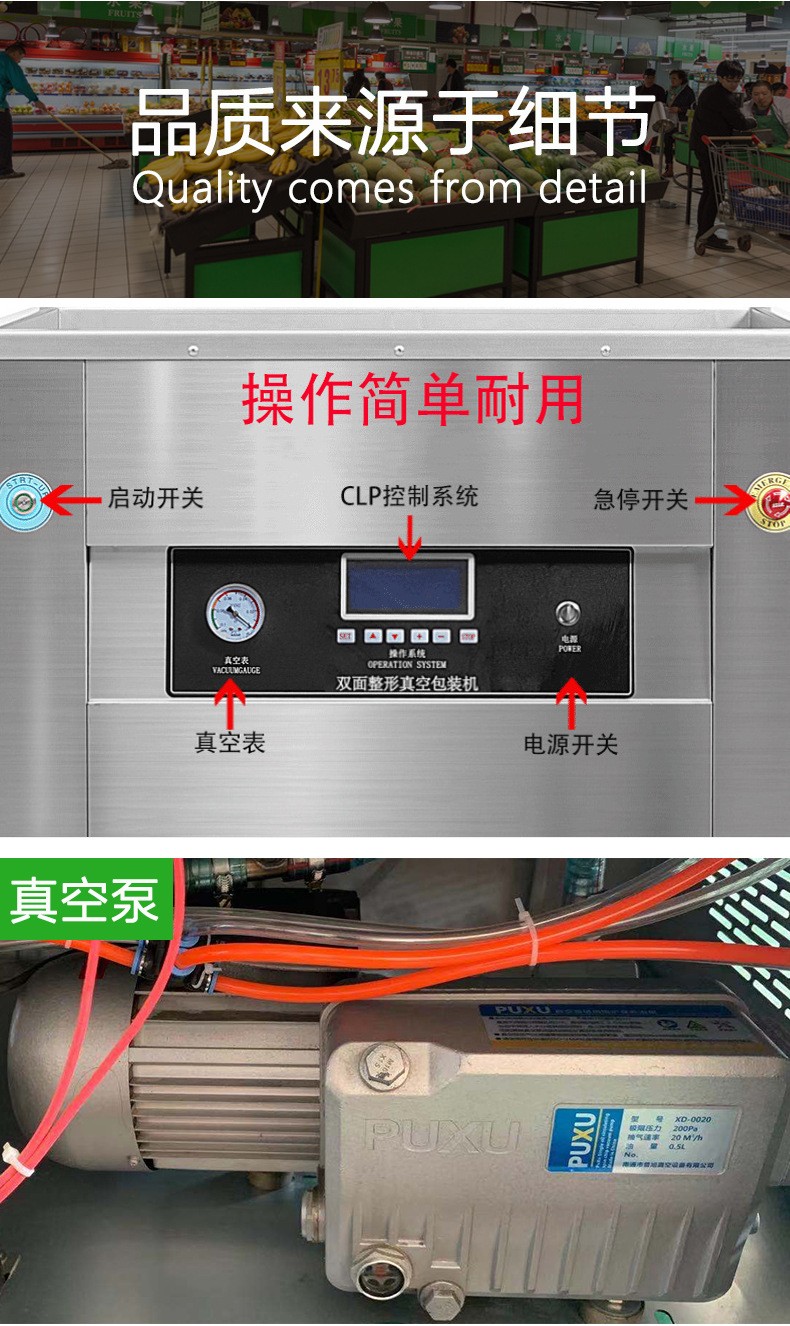 • 一般有控制面板和控制電路。控制面板上有各種操作按鈕和顯示屏,操作人員可以通過它來設(shè)置包裝參數(shù),如真空度、整形時間、封口溫度和時間等。控制電路則負(fù)責(zé)協(xié)調(diào)各個部件的工作,確保機(jī)器按照設(shè)定的程序有序運(yùn)行。