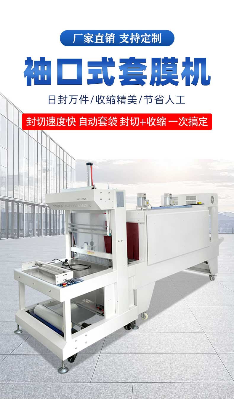 • 自動(dòng)送膜與成型:設(shè)備的送膜機(jī)構(gòu)能精準(zhǔn)送出熱收縮膜,如常見的 PE、POF 膜等,再通過袖口成型裝置將膜環(huán)繞產(chǎn)品,形成 “袖口” 狀包裹,可支持左 / 右進(jìn)料以及多排組合包裝等模式,能很好地適配瓶罐、盒裝等不同形狀的產(chǎn)品。