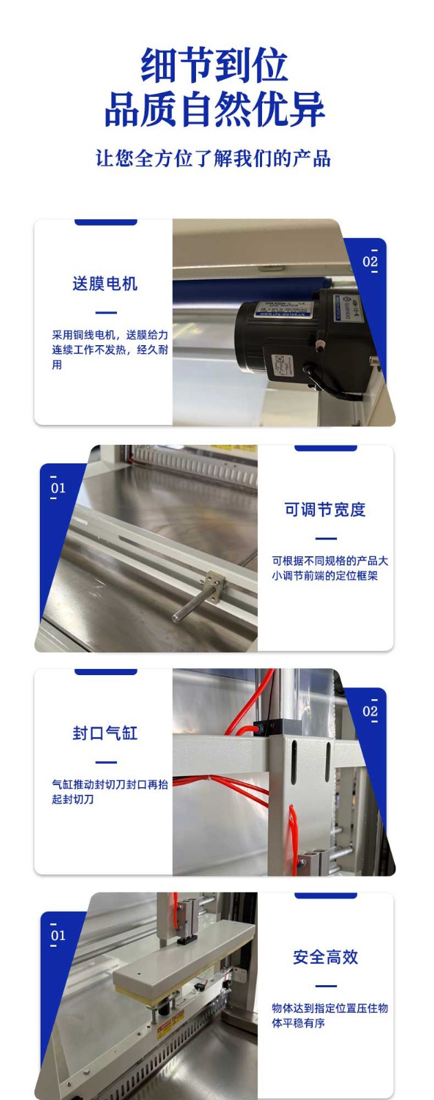• 包裝效果好:通過精確的送膜和封切控制,以及均勻的熱收縮過程,包裝膜可以緊密貼合產(chǎn)品,形成美觀、牢固的袖口式包裝,提升產(chǎn)品的外觀品質(zhì)和市場(chǎng)競(jìng)爭(zhēng)力6